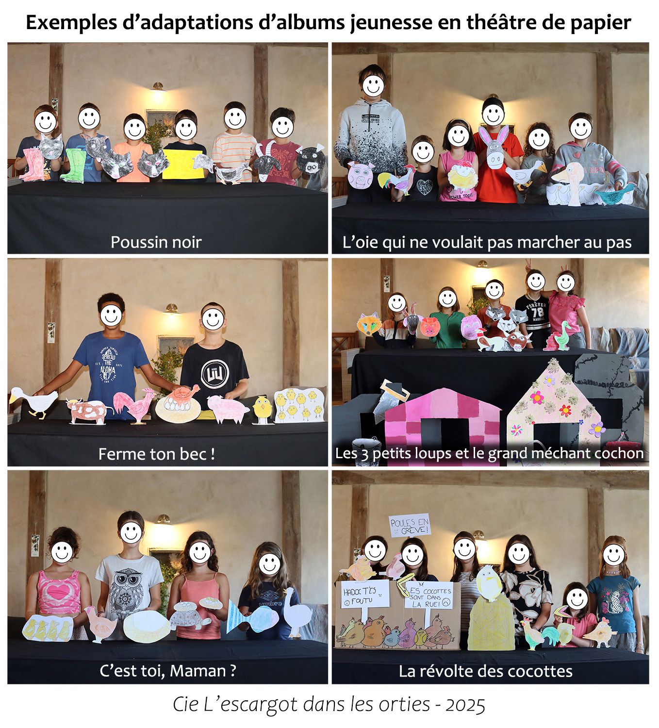 - Encadrement professionnel : Natacha Dellis et Jean-Michel Lété – comédiens, auteurs, metteurs en scène et marionnettistes (voir La compagnie)